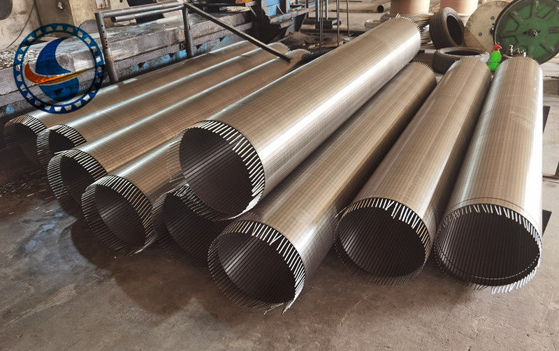 와이어 래프드 스크린은 길쭉한 지지 막대기 내부 배열을 둘러싼 Vee 또는 틈 모양의 와이어로 제조됩니다.