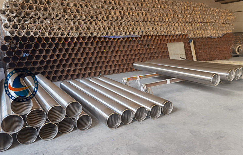 철로 싸인 스크린파이프는 V-형 와이어와 각 교차로에 함께 용접 된 둥근 막으로 구성됩니다.